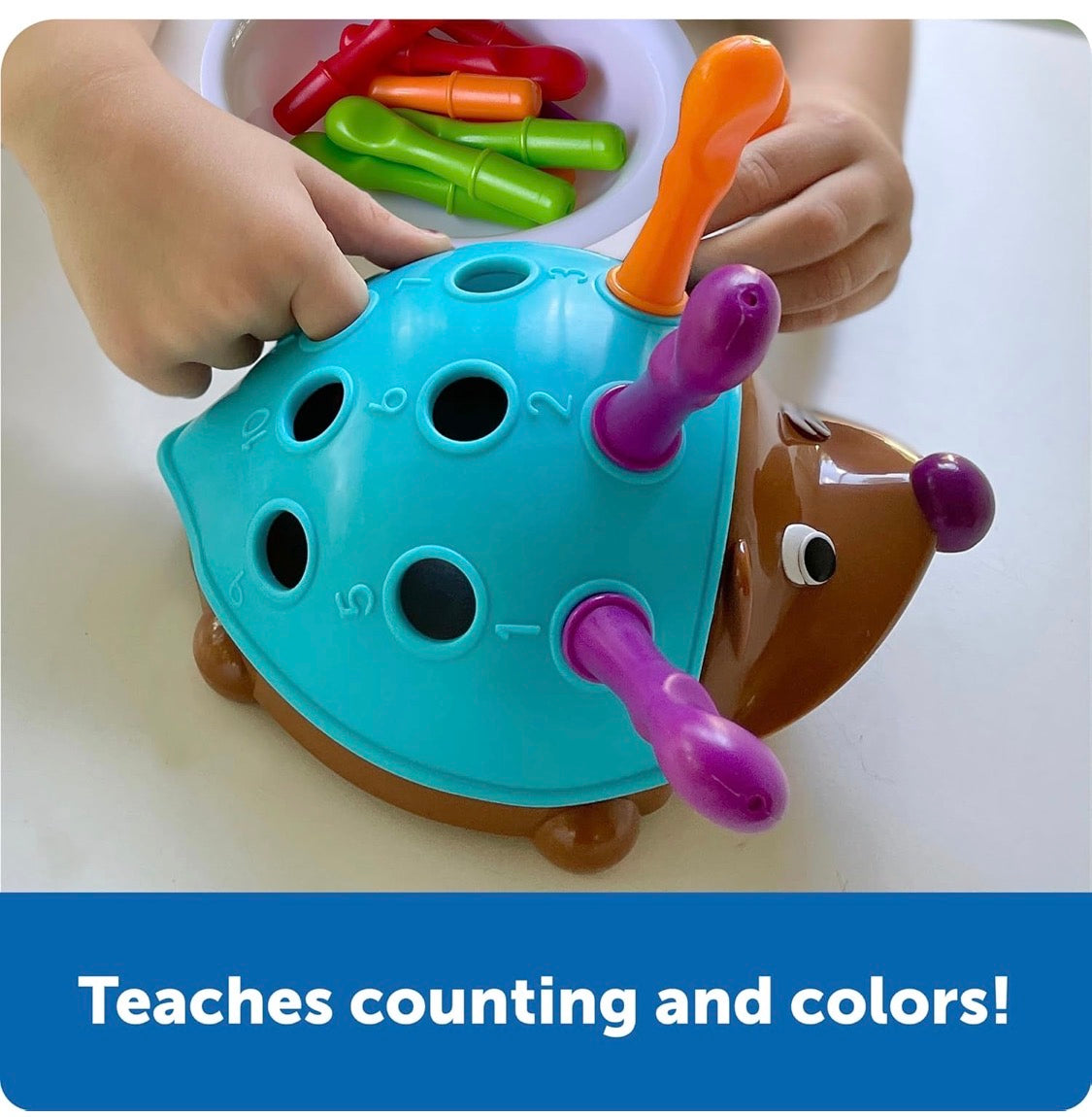 - PROMOTES COGNITIVE DEVELOPMENT - Numbered holes in the hedgehog's back create natural opportunities for learning number identification, counting skills, and color matching through playful exploration